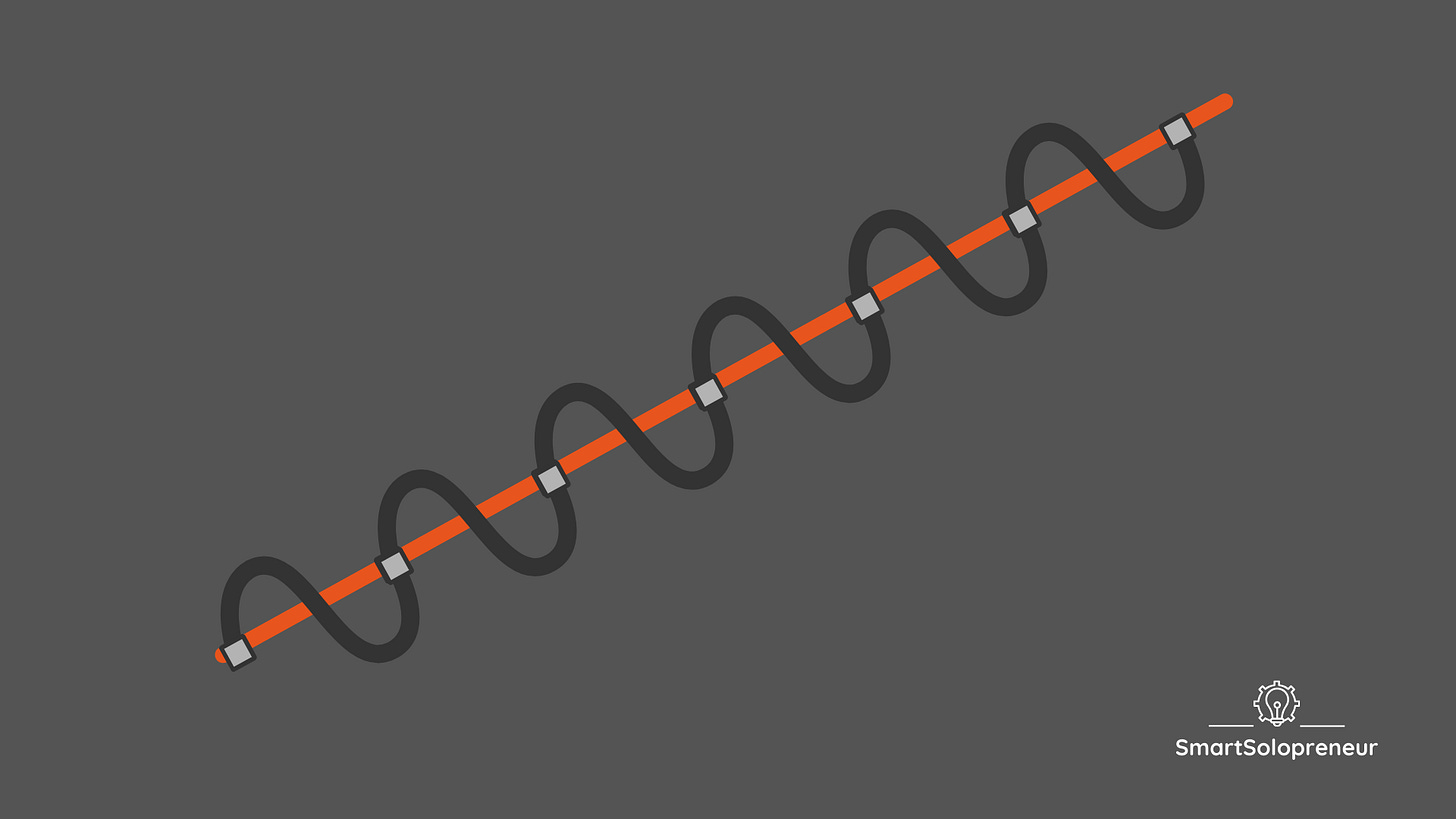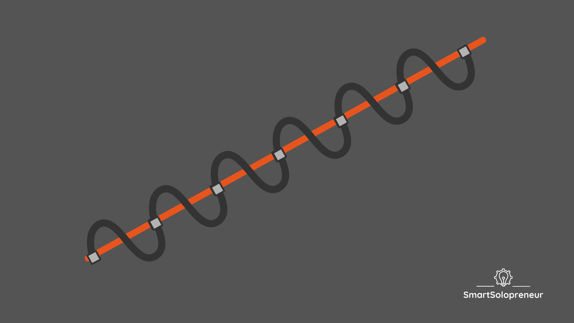 The orange line is the reason it’s impossible to get back to where you started. That feeling of not having achieved anything, is just that, a feeling. Let’s look closer at the curve moving up and down. Yes, there are highs and lows. But look a little closer. The low you are experiencing might be higher than a previous high. Doesn’t feel like it, but it is. Think about that the next time you feel you haven’t accomplished anything! Just look back to where you came from.